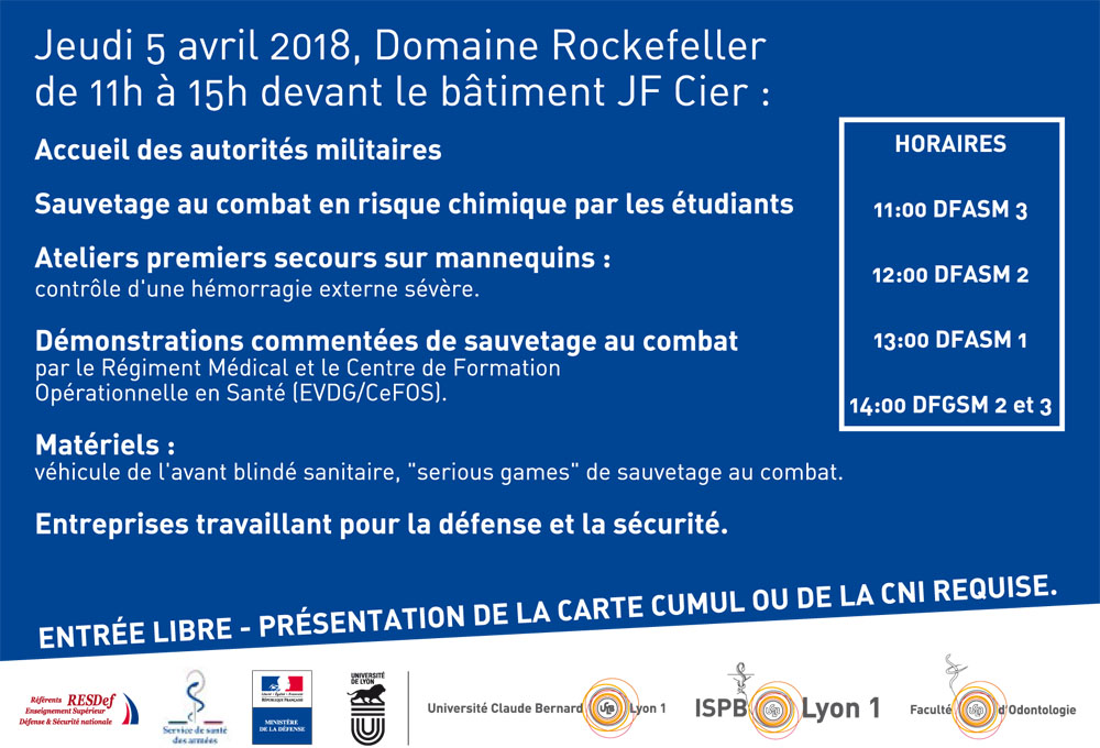 Les RUDE auront lieu le 5 avril 2018 sur le Domaine Rockefeller de 11 à 15h devant le batiment CIER. Au programme : ateliers premiers secours contr?le d'hémorragie, démonstrations de sauvetage au combat, découverte de matériel, rencontre d'entreprises...